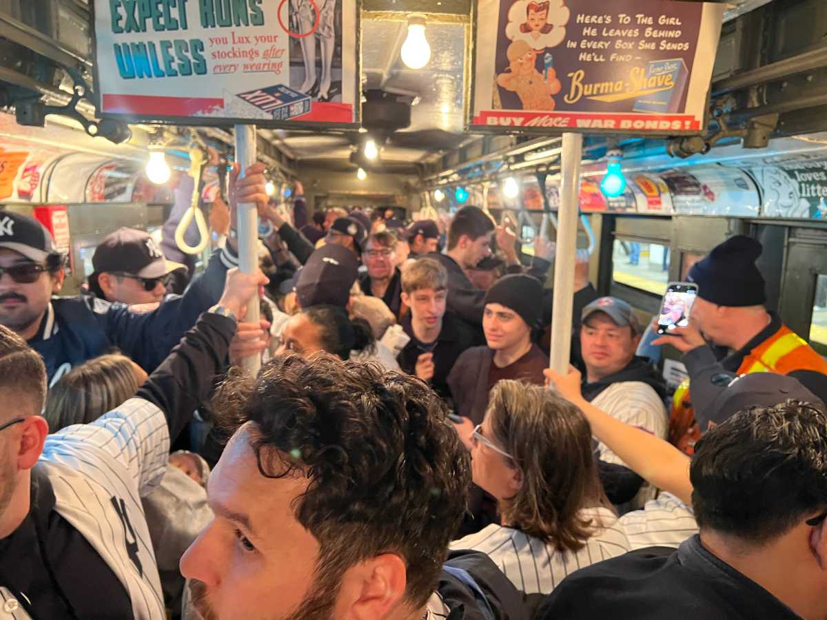 In celebration of the New York Yankees’ home opener on Friday, April 3, the MTA gave several fans who took the train to the game a ride on a special train harkening back to the franchise’s early days.
