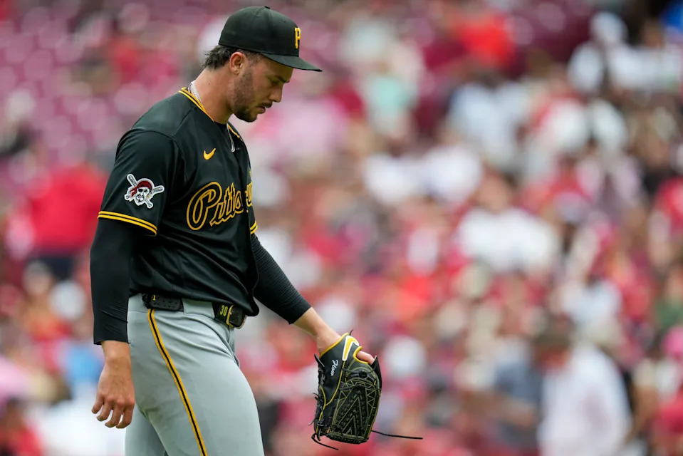 Pittsburgh Pirates pitcher Paul Skenes (30) returns to the dugout after the fourth inning of the MLB National League game between the Cincinnati Reds and the Pittsburgh Pirates at Great American Ball Park in downtown Cincinnati on Wednesday, April 1, 2026.