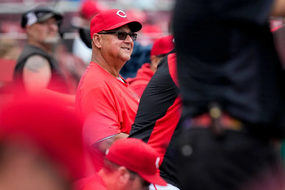 Cincinnati Reds manager Terry Francona (77) looks on from the dugout in the ninth inning of the MLB National League game between the Cincinnati Reds and the Pittsburgh Pirates at Great American Ball Park in downtown Cincinnati on Wednesday, April 1, 2026. The Reds lost 8-3.