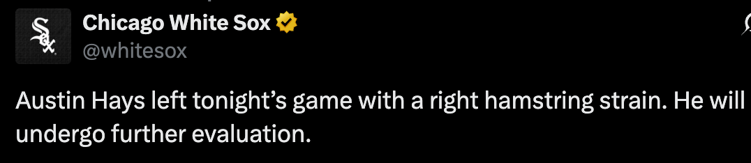 Rutschman picked up a walk with two outs in the top of the fourth, showing Fedde is indeed a mortal after all. Tyler O’Neill singled on a fly ball and managed to get Rutschman in, but in the process, Hays left the field limping after trying to field the ball. Now with the Orioles up 1-0, Ryan Mountcastle followed up with a single, putting runners in the corners with two outs. Fedde bounced back, forcing Colton Cowser to go down swinging, and stopped any further damage. Derek Hill picked up a two-out walk and stole second in the bottom of the fourth, but Andrew Benintendi stranded him, of course.