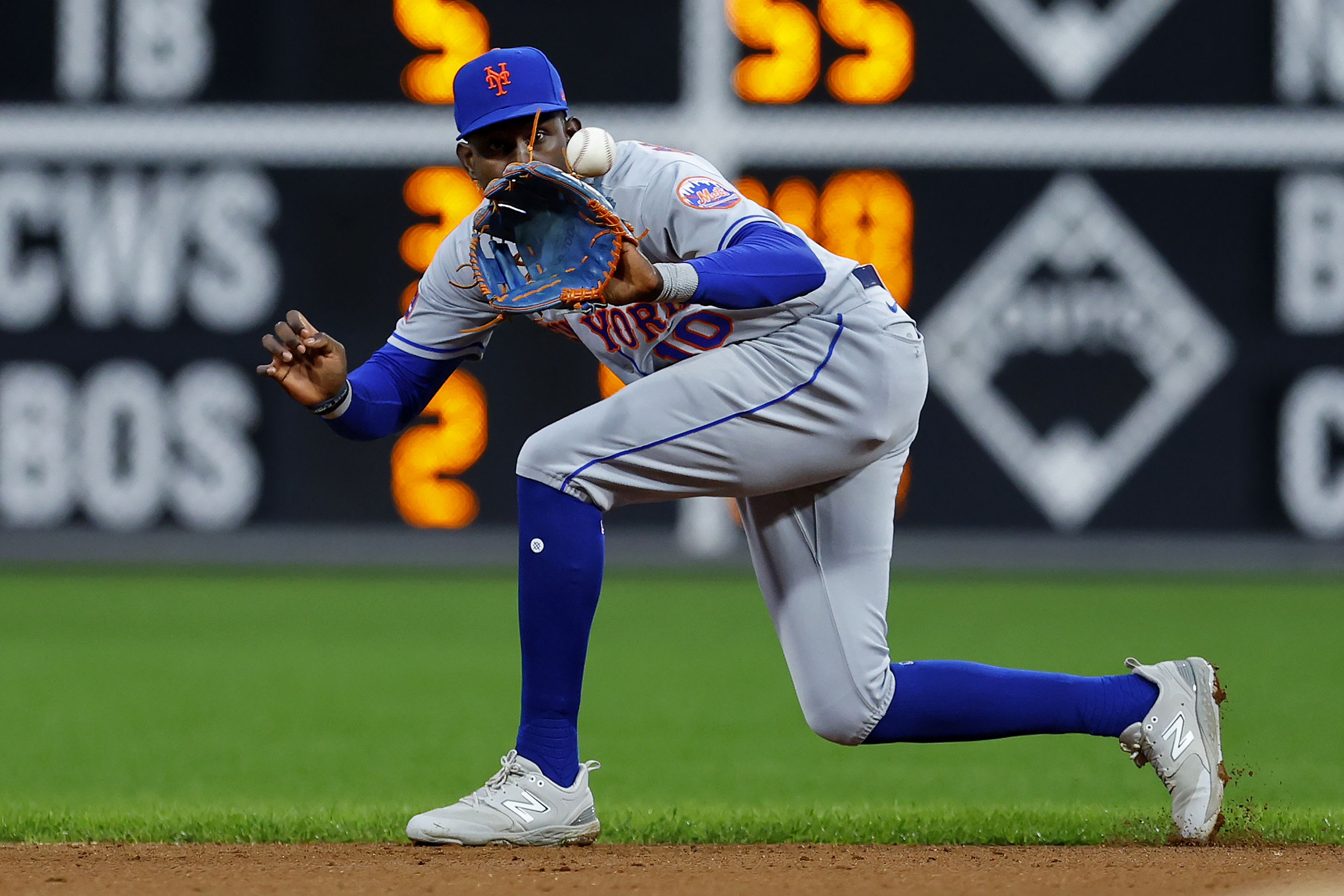 GettyRonny Mauricio #10 of the New York Mets catches a line drive hit by Alec Bohm (not in the picture) #28 of the Philadelphia Phillies during the first inning at Citizens Bank Park on September 24, 2023 in Philadelphia, Pennsylvania.