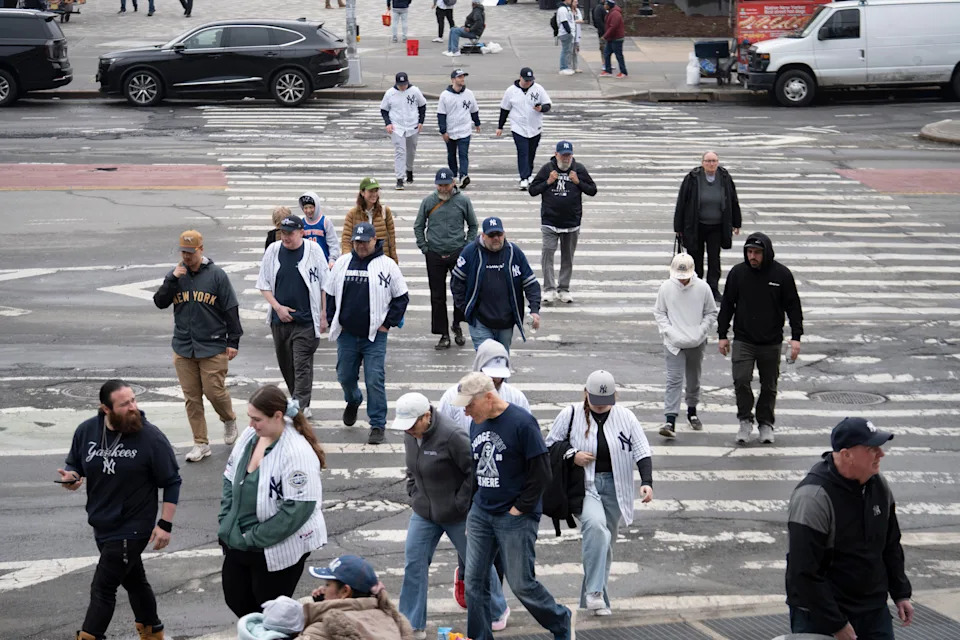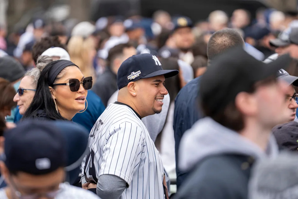 Fans flock the the stadium before the home opener baseball game between the New York Yankees and Miami Marlins at Yankee Stadium in Bronx, NY, Friday, April 3, 2026.