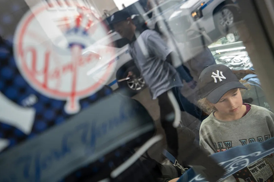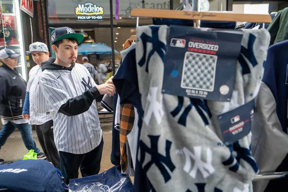 A fan shops for merchandise before the home opener baseball game between the New York Yankees and Miami Marlins at Yankee Stadium in Bronx, NY, Friday, April 3, 2026.