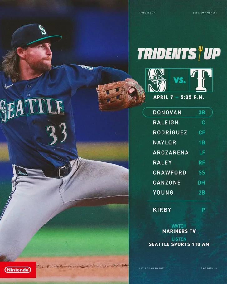 J.P. Crawford returns to Seattle’s lineup after a scheduled day off, which pushes Cole Young to the nine-hole second leadoff spot. For the Rangers, it’s Kyle Higashioka’s turn behind the plate thanks to his even job share with Danny Jansen, and Ezequiel Durán gets the start at third base in place of Josh Jung. Durán came in yesterday’s game to pinch-run for Jung, and given his adept base-stealing abilities, it would behoove the Mariners to keep him off the basepaths in what is likely to be another close one.