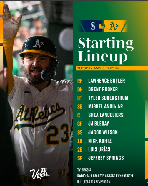 Randy’s back! But at DH as the team continues to be careful with him with his hamstring injury. I really don’t want to see Randy battling the non-existent foul territory at Sutter Home Park anyway, so this is fine, except it does push Jorge Polanco into the field. Considering how many hot shots came directly at Leo Rivas’s tiny body last night over the fast field at Stutter Health, I am nervous about this. Cal gets a rare off-day as Garver will catch Emerson Hancock, who generates a lot of ground balls. Baseball gods, please let those balls go to the left side of the infield.