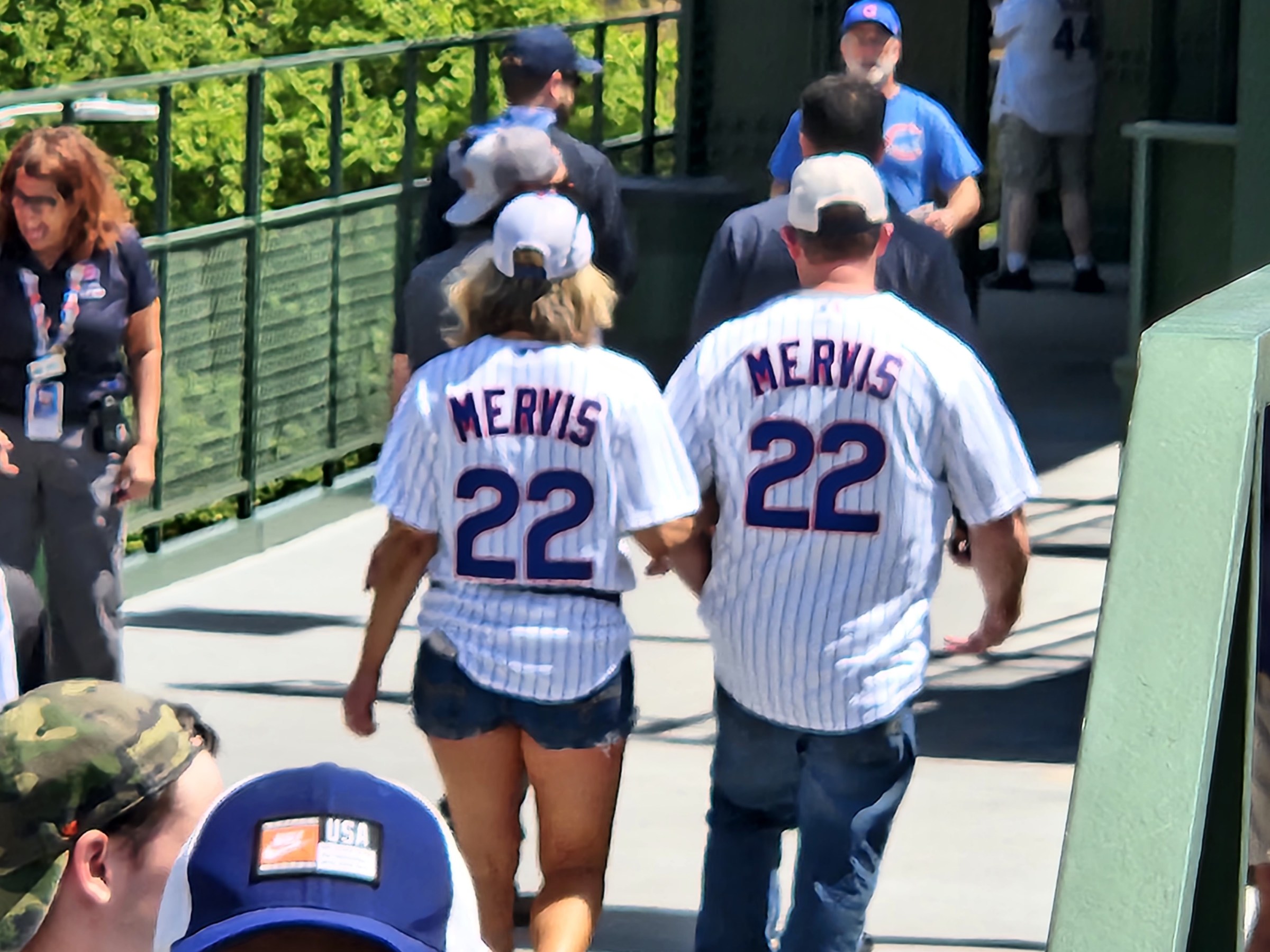 Matt Mervis? People were buying his No. 22 jersey before he even played in a single game for the Cubs — I took this photo in the Wrigley Field bleachers on May 5, 2023, just before that day’s game when Mervis made his MLB debut (and no, those are not his parents, who you can see here in an interview done that day):