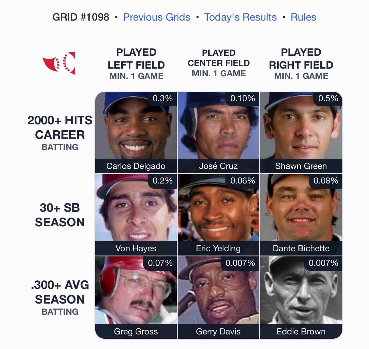 At various points with the Colorado Rockies in the 1990s, Dante Bichette led his league in hits, home runs, runs batted in, slugging percentage and total bases. He also had 31 stolen bases (to go with 31 homers) in 1996, which qualified him for the middle-right square in last Saturday’s Grid.
