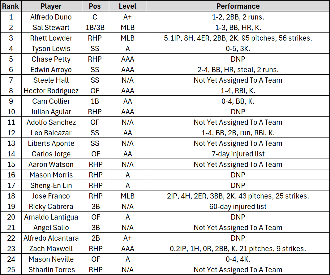 Through Friday the 10th I will be including the Top 25 Prospect Rundown here on the site and game notes, but after that if you would like to get that each and every day, you can get it emailed to you every morning during the season by signing up at Patreon and helping support the site.