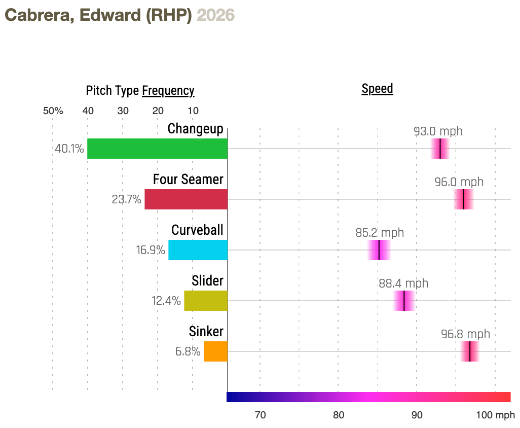 Cabrera hasn’t faced the Pirates since 2023, and the only current Pirate who has more than a couple of at-bats against him is Marcell Ozuna (2-for-11 with four strikeouts).