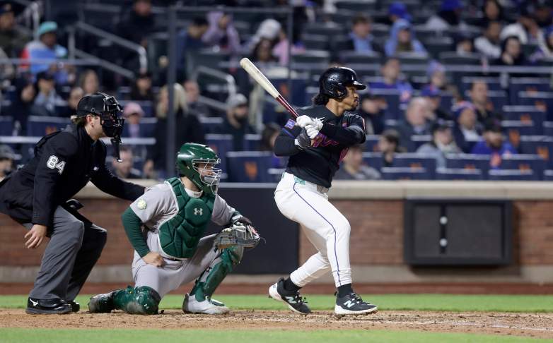 GettyNEW YORK, NEW YORK – APRIL 10: Francisco Lindor #12 of the New York Mets follows through on his sixth inning base hit against the Athletics at Citi Field on April 10, 2026 in New York City. (Photo by Jim McIsaac/Getty Images)