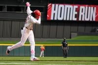 Then came a play rarely seen in an MLB game. Two runners scored on one wild pitch. Bachman’s pitch hit umpire Ben May in the mask and ricocheted away far enough for both De La Cruz to score from third and Stewart from second.