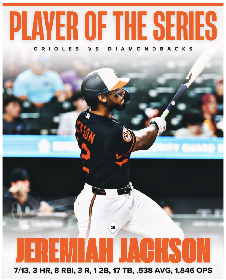 With runners in scoring position against Arizona, Jackson hit 2-for-3 (.667) while the rest of his squad went 5-for-22 (.227). On Wednesday, Baltimore hit 3-for-11 (.273) with RISP, Jackson accounting for one of those three hits.
