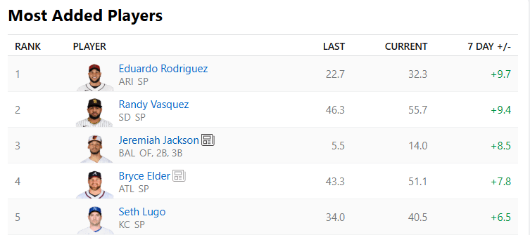 Warren retired only 11 hitters on Monday. I get it, that doesn’t scream must-add. However, his line would have been much better if not for an error by José Caballero. During his latest start against the Angels, Warren’s changeup yielded three whiffs on six swings; that could be noteworthy, considering his well-documented struggles against left-handers. I’m also intrigued by his stellar 5.32 PLV; that’s tied with Jacob deGrom for seventh among all pitchers with at least 100 pitches thrown thus far. Yes, I’m cherry-picking a bit. But the point here is to say that he’s doing a lot of good things under the hood despite the forgettable results. A home start against the Royals awaits this Saturday. I have a hunch his roster rate will jump after that one.