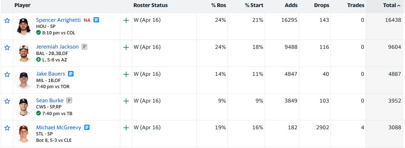 The Stony Brook native has posted a 3.94 ERA, 0.94 WHIP, and a 19.1% K-BB through his first three turns. There’s no reason to stop now with the White Sox today. He’ll also face the Reds and Guardians down the line, so he could be useful for the next week-plus.