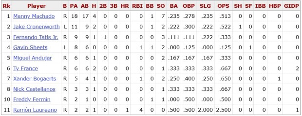 Right-handed hitters have a .985 OPS so far against Castillo. He has allowed 10 earned runs over his last two starts (7 IP) after opening the season with seven strikeouts over six shutout innings. Castillo has a 3.71 ERA over nine career starts against the Padres. He allowed five runs in five innings in a no-decision last year.