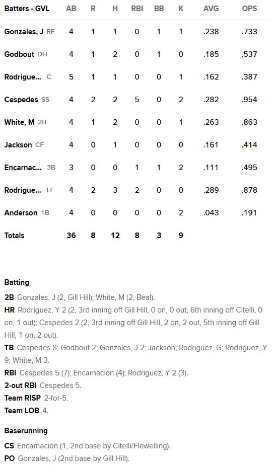 For the Drive in the loss, Yoeilin Cespedes went yard twice on the day, with both coming off another 80-grade name in pitcher Gary Gill Hill. Yophery Rodriguez homered twice as well, knocking in five runs on the day.