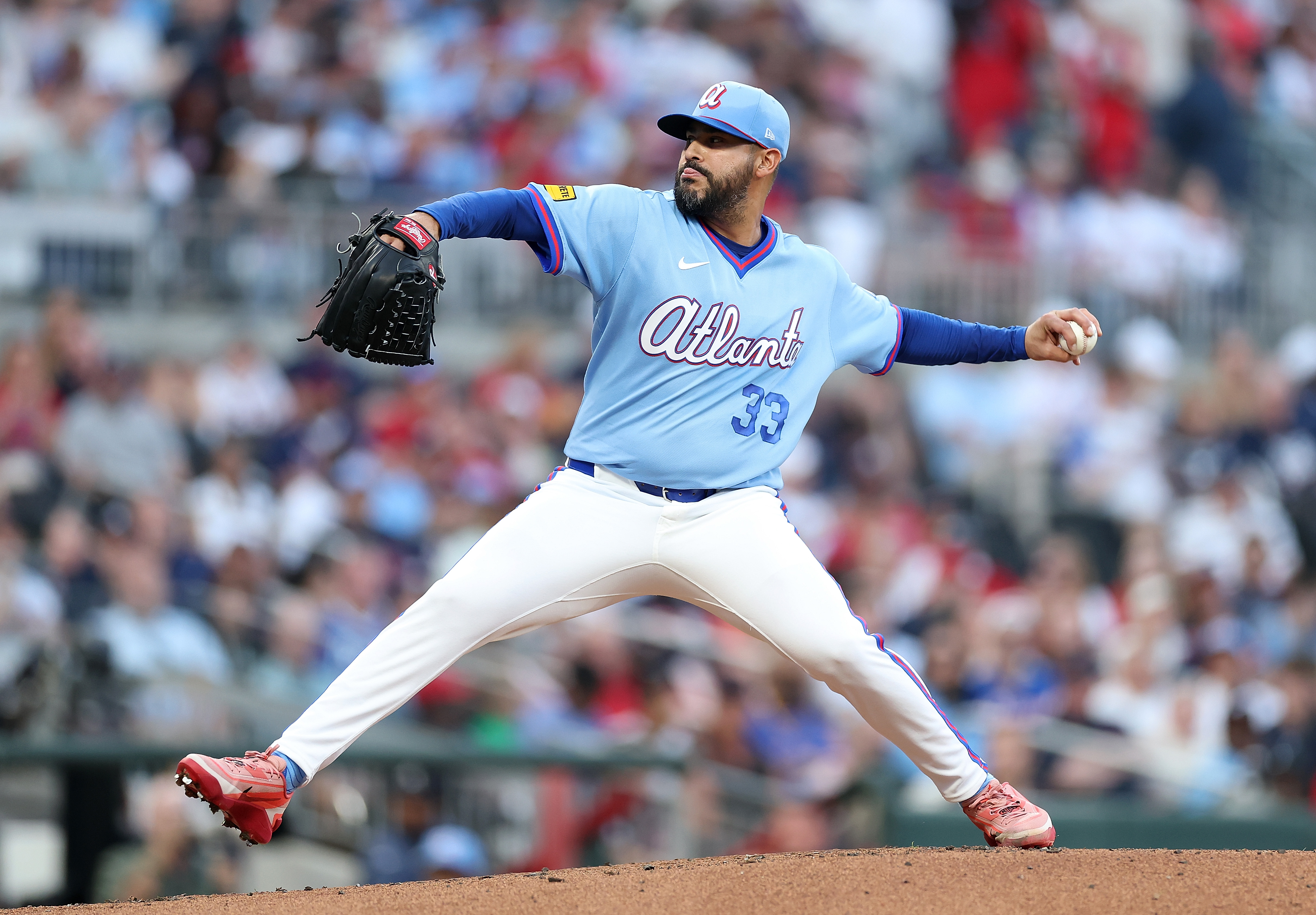 GettyMartín Pérez #33 of the Atlanta Braves pitches in the second inning against the Cleveland Guardians at Truist Park on April 11, 2026 in Atlanta, Georgia.