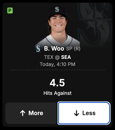 DraftKings Network projection: 54% likely to have LESS than 4.5 Hits Against