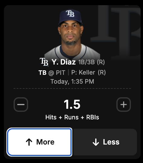 DraftKings Network projection: 56% likely to have MORE than 1.5 Hits + Runs + RBIs