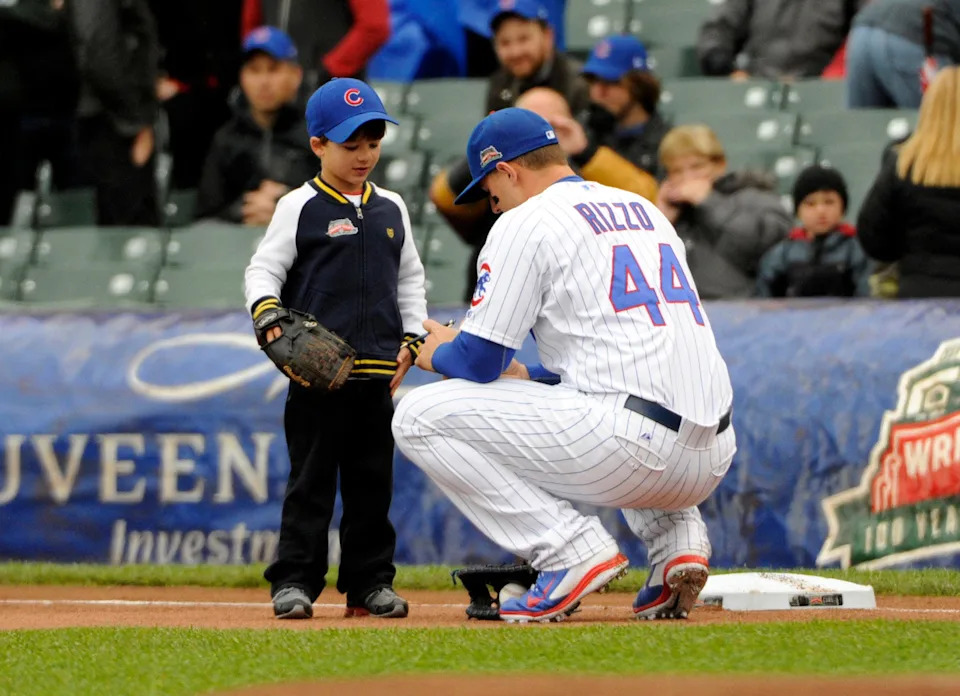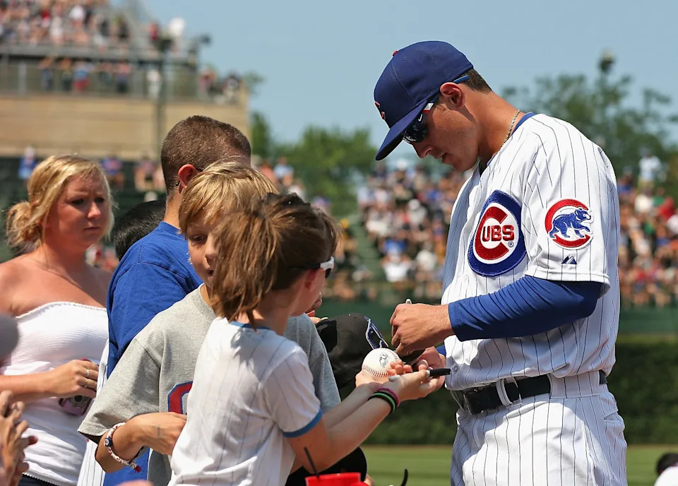 Anthony Rizzo of the Chicago Cubs signs autographs before a game against the Pittsburgh Pirates at Wrigley Field on July 5, 2013, in Chicago. The Pirates defeated the Cubs 6-2.