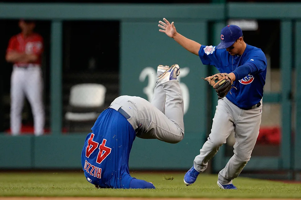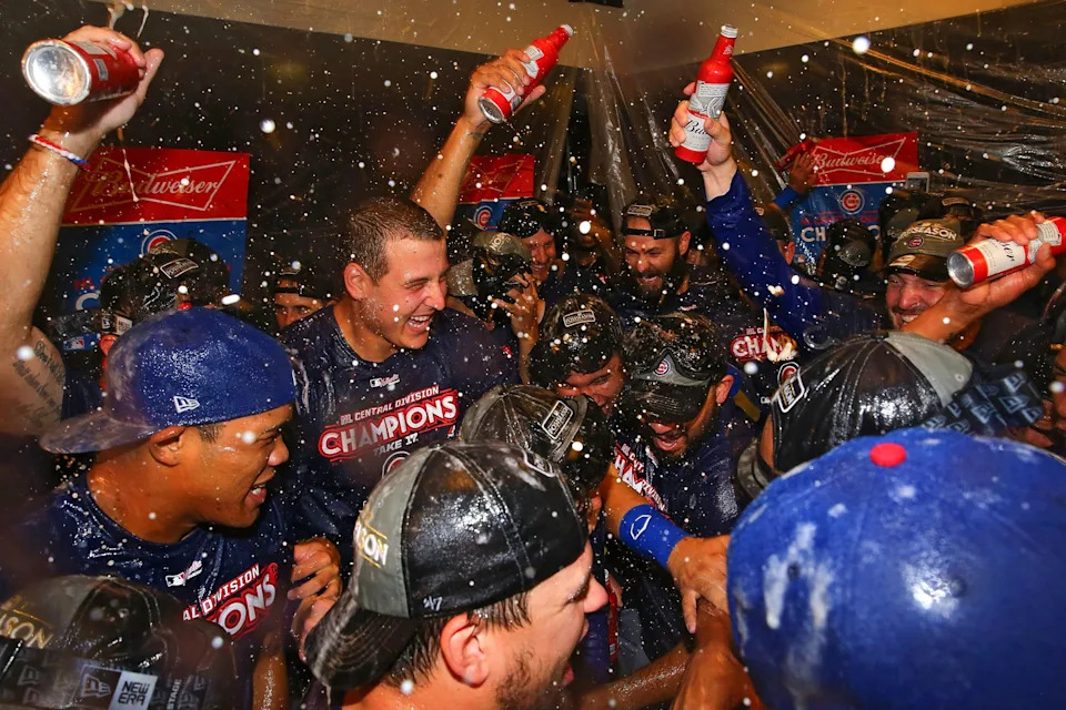 Anthony Rizzo of the Chicago Cubs celebrates after winning the National League Central title against the St. Louis Cardinals at Busch Stadium on Sept. 27, 2017, in St. Louis, Missouri.