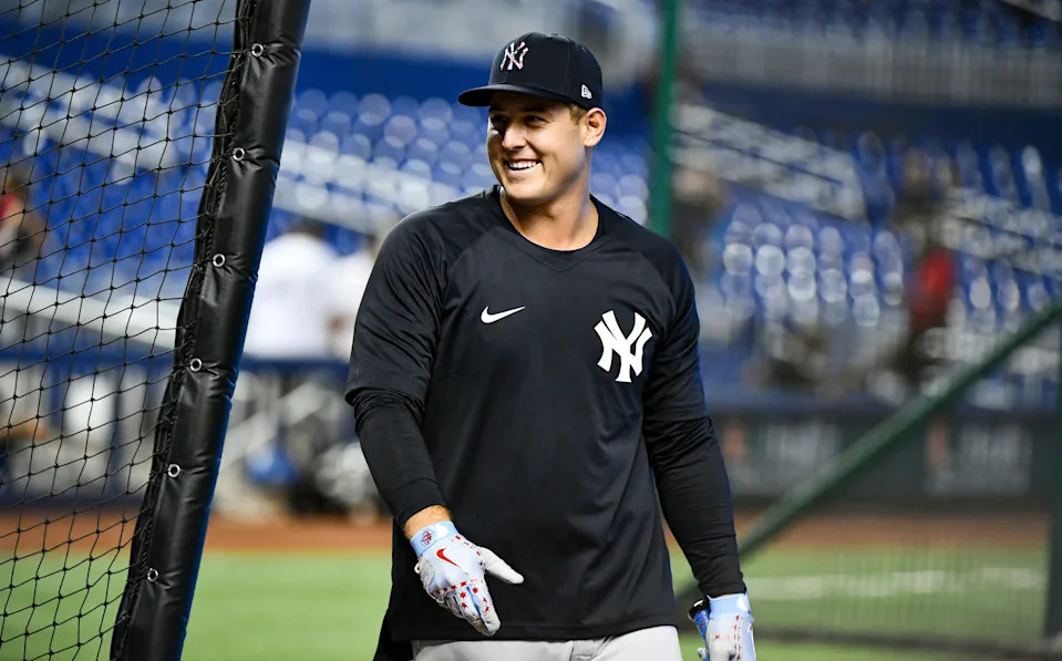 Anthony Rizzo of the New York Yankees during batting practice before the start of the game against the Miami Marlins at LoanDepot park on July 30, 2021 in Miami. The Yankees acquired Rizzo in a trade on July 29, 2021.