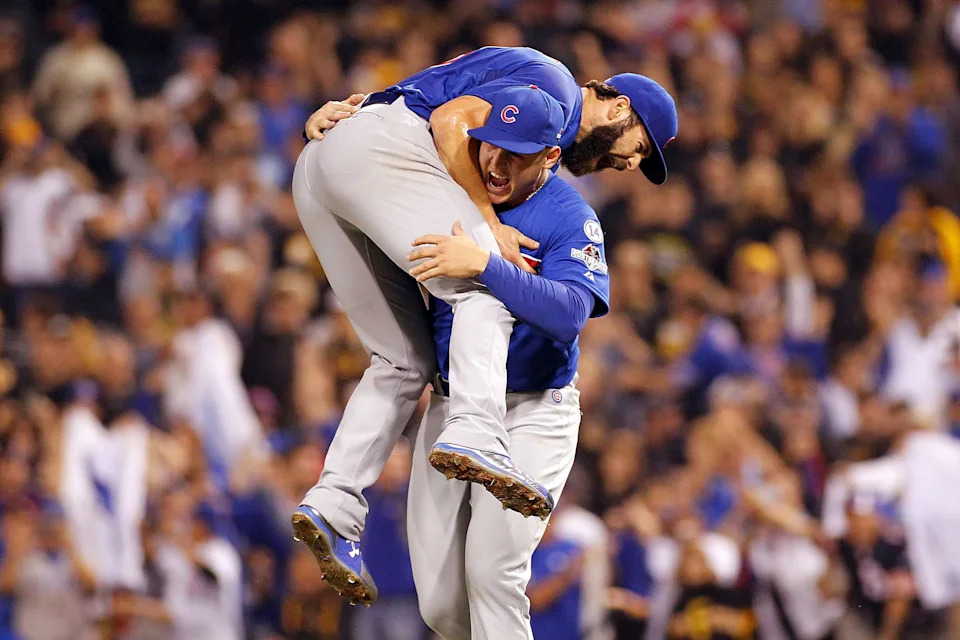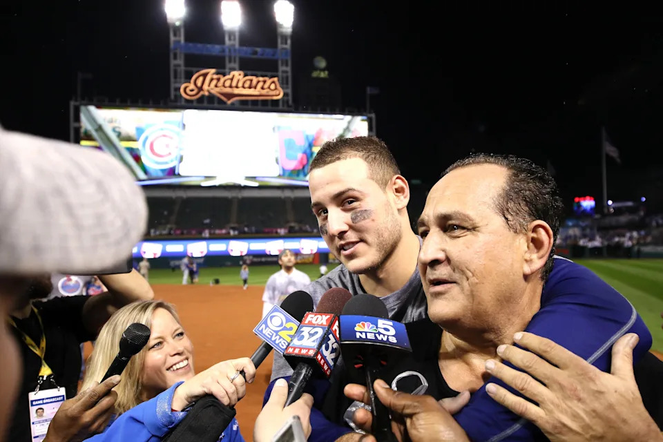 Anthony Rizzo celebrates with his father, John Rizzo, after the Chicago Cubs defeated the Cleveland Indians in Game 7 of the 2016 World Series at Progressive Field on Nov. 2, 2016, in Cleveland. The Cubs won their first World Series in 108 years.