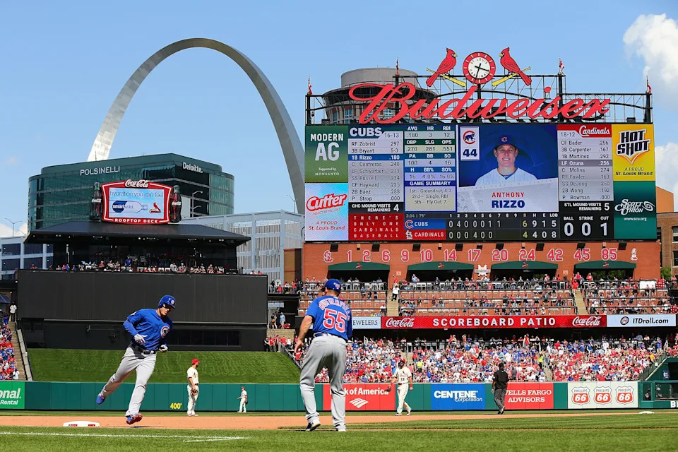 Anthony Rizzo of the Chicago Cubs rounds the bases after hitting a home run against the St. Louis Cardinals in the seventh inning at Busch Stadium on May 5, 2018, in St. Louis, Missouri.