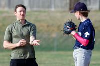 Central Missouri Homeschool Saints Pitching Coach Xander Lovin helps freshman Sam Crawford