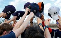 Members of the Central Missouri Homeschool Saints baseball team huddle and pray