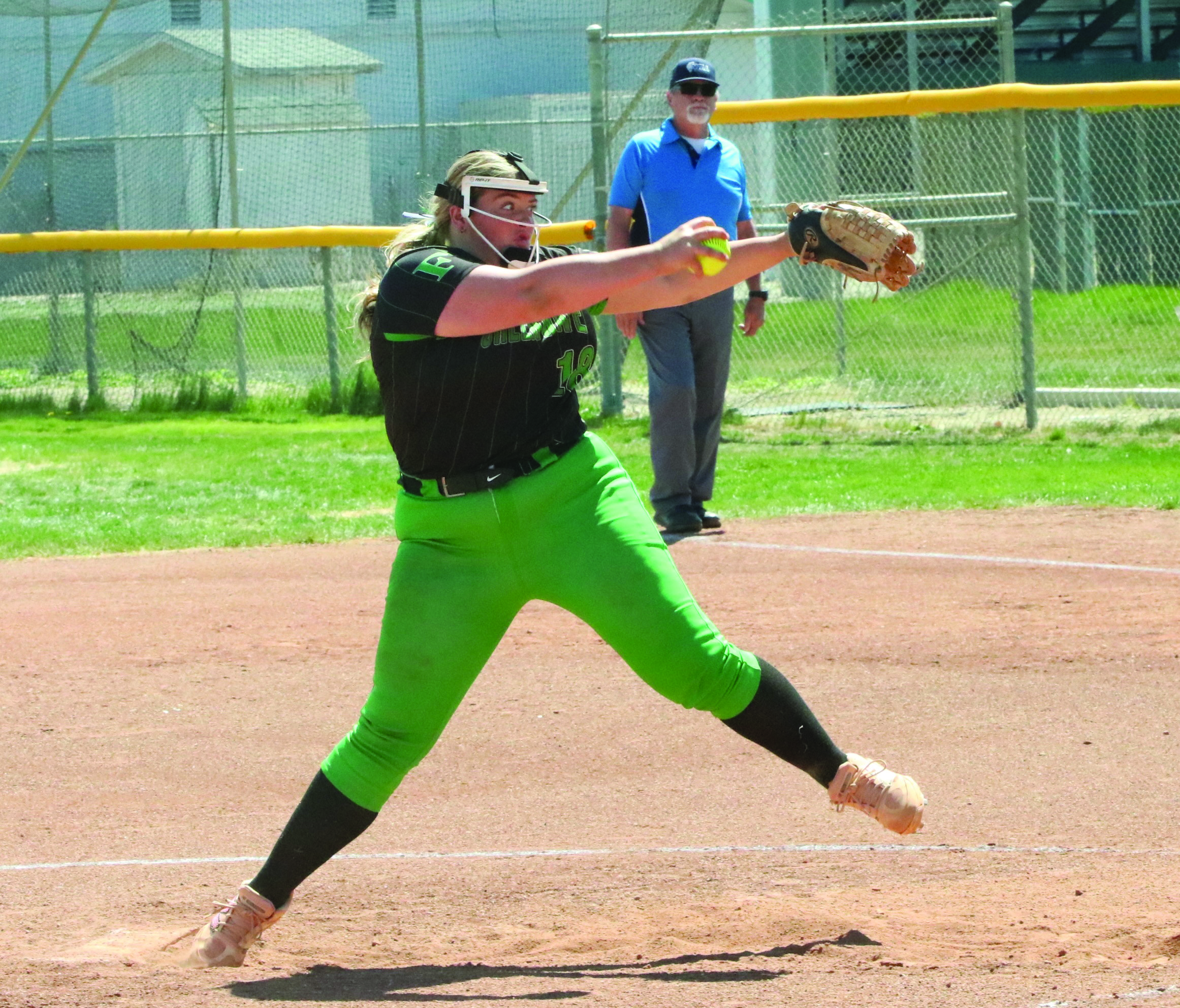 Fallon senior Jocelyn Pimental pitches against Lowry in the Lady Wave’s final home series of the season.