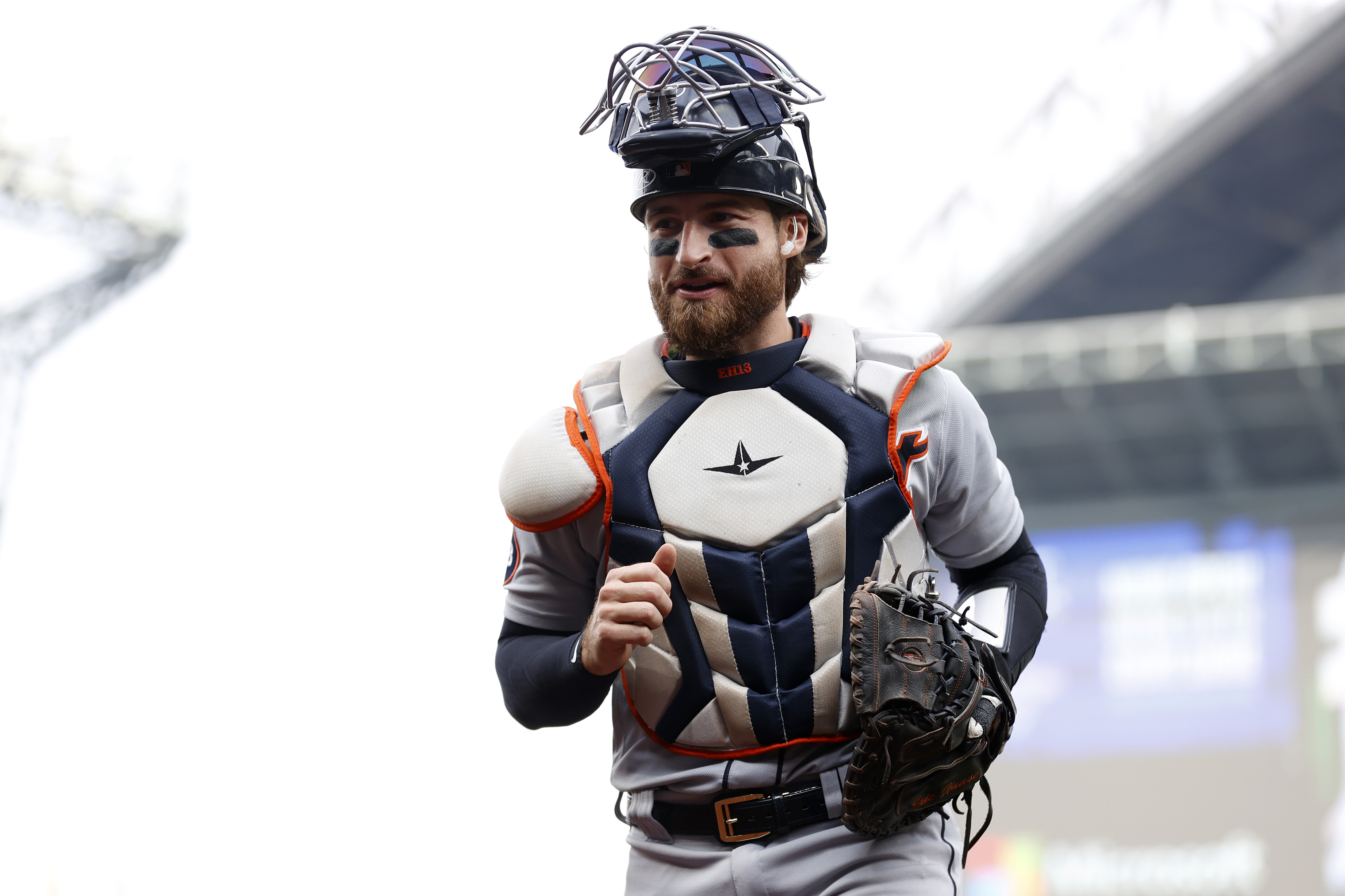 GettyEric Haase #13 of the Detroit Tigers looks on during the first inning against the Seattle Mariners at T-Mobile Park on October 04, 2022 in Seattle, Washington.