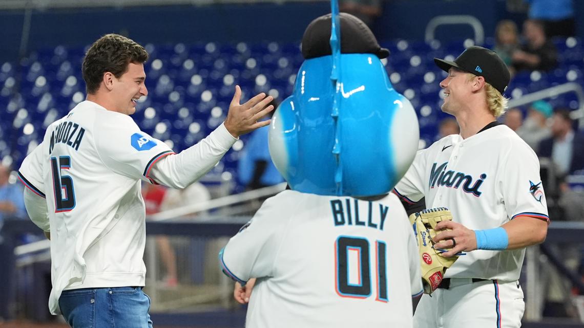 Mendoza threw out the first pitch at the Miami Marlins game against the St. Louis Cardinals. The presumptive number one pick in Thursday’s draft is a Miami native and graduated from Christopher Columbus High School.Â