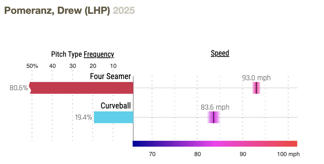 Clearly, this is as an opener; Pomeranz hasn’t thrown more than 17 pitches in an outing this year, so he’s probably just going to throw one inning and then, most likely, Ben Brown will take over. Brown would have taken this turn in the rotation otherwise. Maybe things will go better for him with an opener. And since I already wrote up a bunch of stuff about Brown before this announcement, you get to read it!