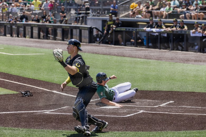 EUGENE, Ore. – Just as they did three times in the Big West tournament, Cal Poly avoided elimination in the NCAA regionals, defeating No. 1 seed Oregon in a wild game, 10-8.