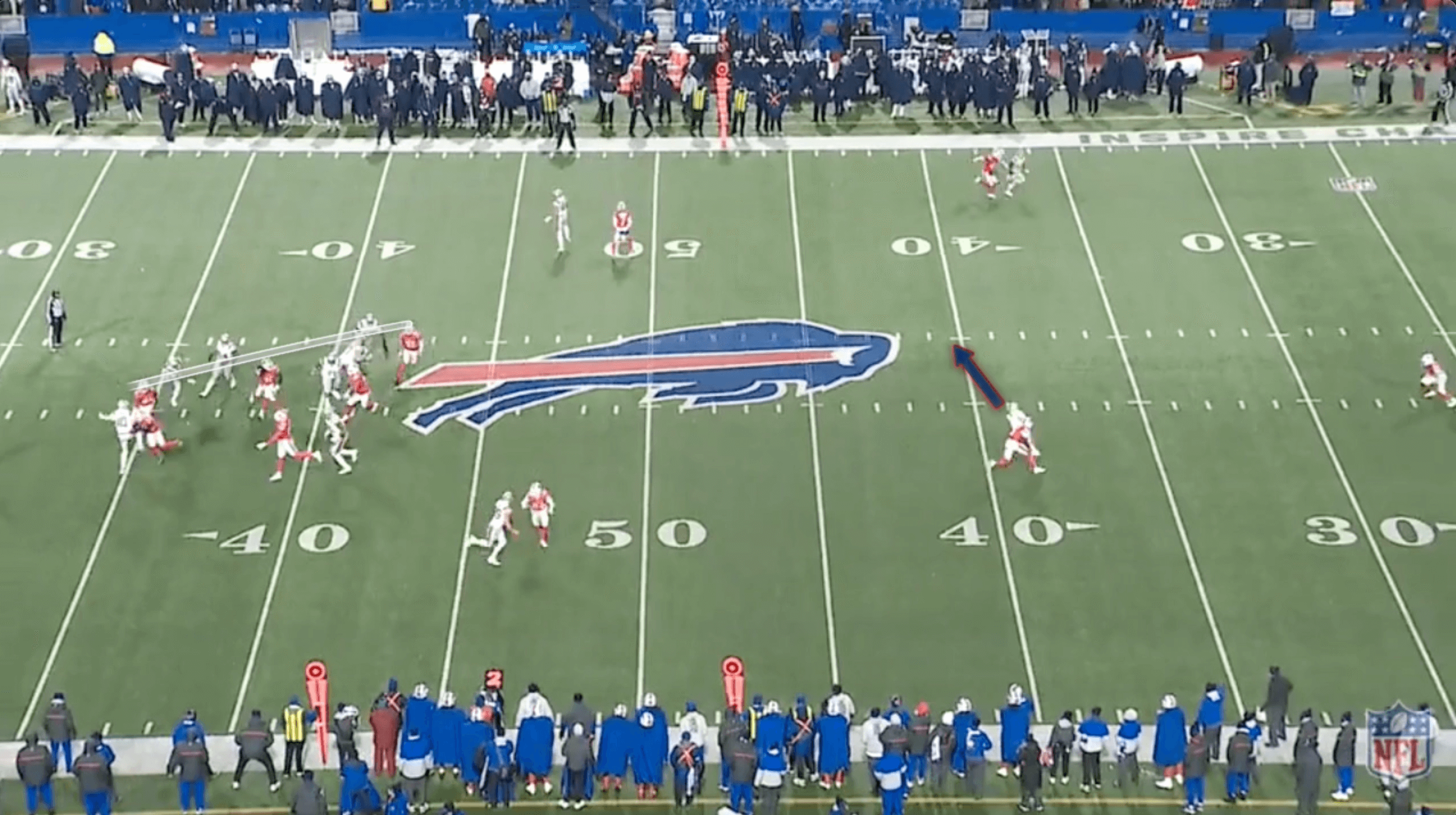 For example, on this play against the Rams, the defense rotated into Cover 1 (man-to-man with one deep safety and a robber).
