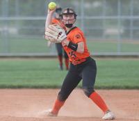 Verona sophomore Addison Quackenboss makes a throw to first base against Onalaska in a WIAA Division 1 regional final on Thursday, May 29, at Verona Area High School.