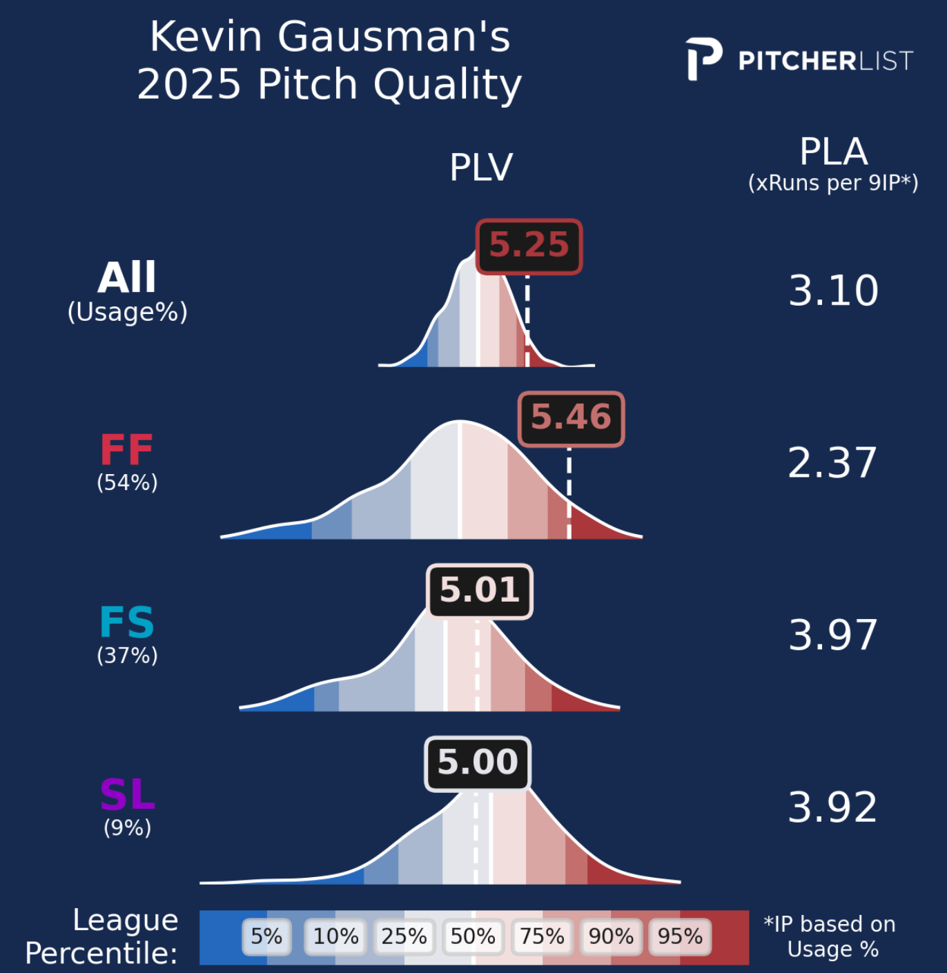 So, is Gausman back to who he was when he first joined the Blue Jays? Maybe? Yeah, we’re actually at that point where we can start feeling confident with Gausman again. He’s clearly made the changes to his arsenal that he’s needed to, and the ERA estimators across the board are in on him. PLA, especially, is though, as he has one of the best marks of any pitcher right now.