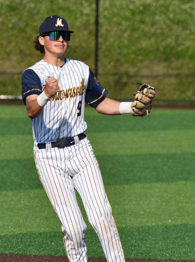 Montoursville second baseman Royce Bowes celebrates after turning-two in the first inning.