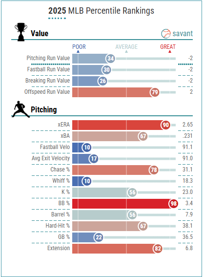 2025 Stats: 19.2 IP, 5.95 ERA, 1.37 WHIP, 23% K%, 3.4% BB%, 4.30 FIP