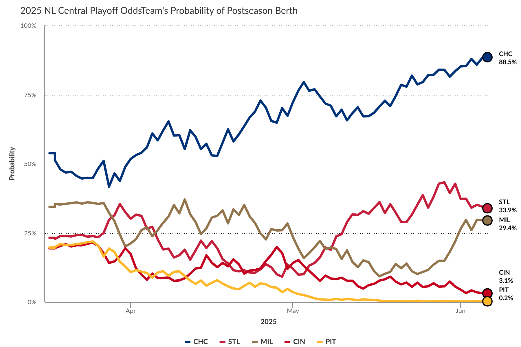 Who would have guessed back at the start of the season that the Cubs and Tigers would have the two best records in baseball when they met in early June? If you raised your hand, you’re either Nostradamus or a liar. In any case, both teams have taken care of business in their respective Central divisions and now square off for three games in Detroit. The Cubs do so with playoff odds that have jumped to 88.5% entering the weekend.