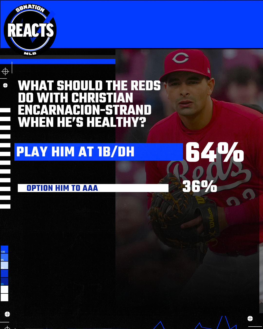 I’d wager that the bulk of the 36% of folks suggesting he be optioned to AAA still have some sort of high hopes for CES, and they’d prefer to see him getting 30 PA a week down there to rediscover his groove before the Reds simply roll him out rusty at the big league level. Or, that’s what they’d prefer to him being activated and sitting on the bench most days, as the Reds do have some versatile, viable options to use at 1B/DH that have hit much, much better in the majors the last two seasons.