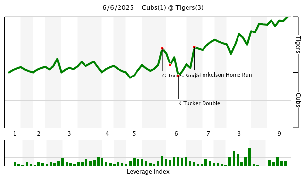 Game 63, June 6: Tigers 3, Cubs 1 (39-24)