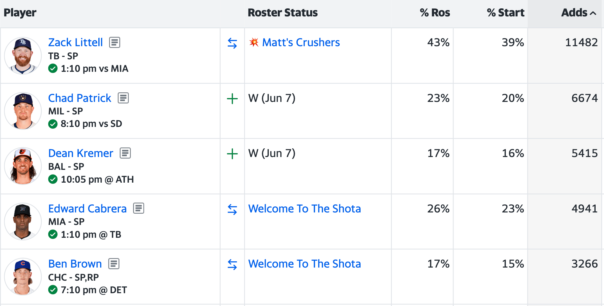 Yesterday’s top 5 added players on Yahoo were all streaming pitchers, and if you scrolled down the list, you’d see that the trend continued, as the entire top 10 were guys starting that day. Wowza.