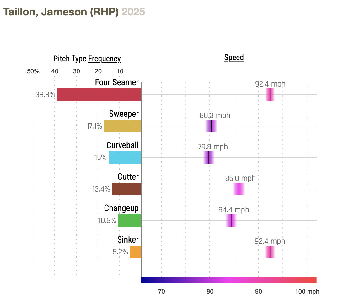 After a bit of a rough patch, Jameson Taillon has now put together four straight good starts, totaling 25⅔ innings in which he has a 2.65 ERA and 0.740 WHIP, with just four walks in that time frame.
