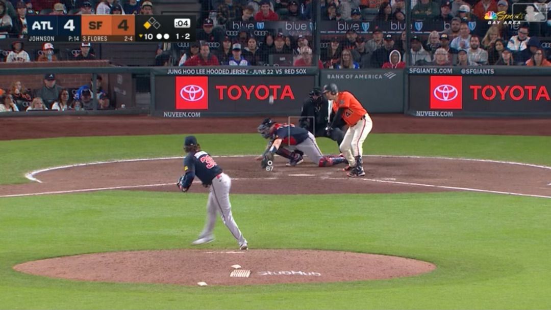 Braves reliever Pierce Johnson is all junk all the time. He threw 15 pitches in the 9th and 10th innings and 14 of them were curveballs. He got an unproductive out from Heliot Ramos to lead off the 10th, and Jung Hoo Lee rolled a weak grounder to second to advance Tyler Fitzgerald to third. But his command was a bit sporadic. A lot of his offerings were up in the zone, popping out of his hand rather than snapping out of it. Still, the top of the line-up bats couldn’t square it up, and Wilmer Flores fell into a quick 1-2 hole. Count leverage, with pitches to play with and a base to play with, there is no expectation to be too fine, or to overthink what to throw next. Johnson isn’t a reliever in that moment, he’s an undertaker: bury the curve, bury the batter.
