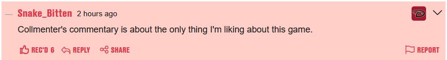 I don’t recall particularly enjoying Josh Collmenter’s presence in the booth in recent years, but he’s a lot better now. I quite like him, actually.