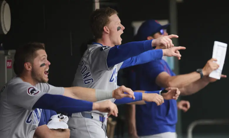 Teammates react to Matt Shaw’s homer. (AP Photo/Paul Sancya)