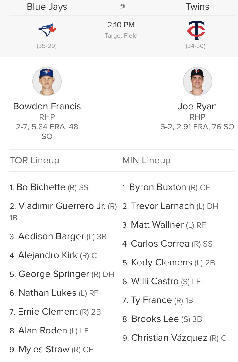 Of course, maybe we shouldn’t get too friendly with our neighbors to the north—they are about to sweep us in the States. Hopefully the Twins can salvage a game today behind now-officially-with-Pablo-hurt Ace Ryan.