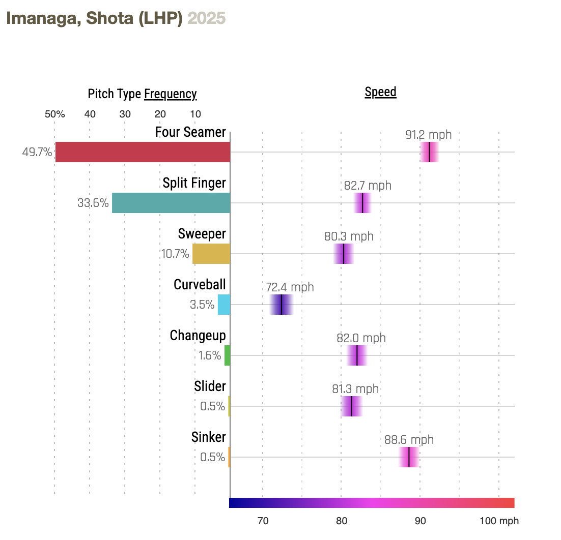 The bad news is that Shōta faced the Brewers just once last year, in Milwaukee (May 29) and it was one of his worst starts of 2024, seven runs allowed in fewer than five innings, with two home runs. Hopefully he’s figured that out.